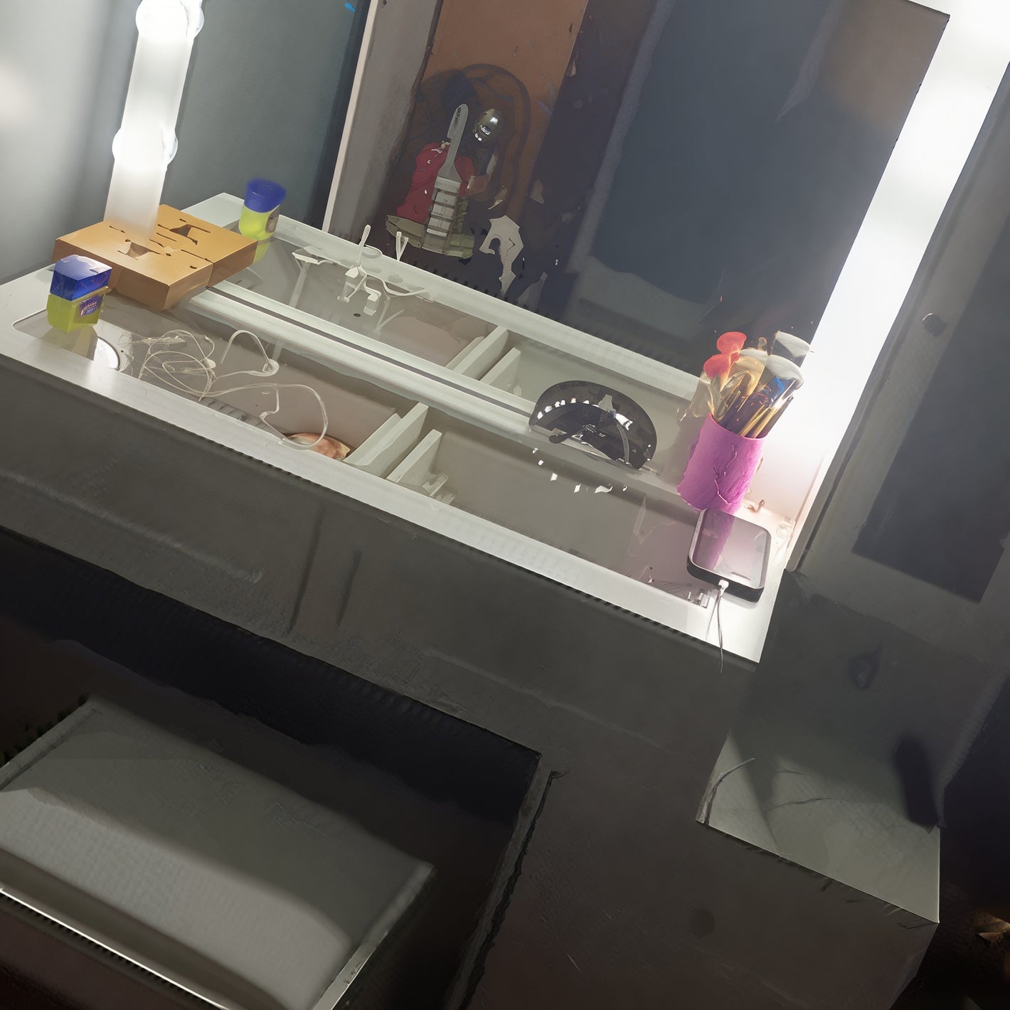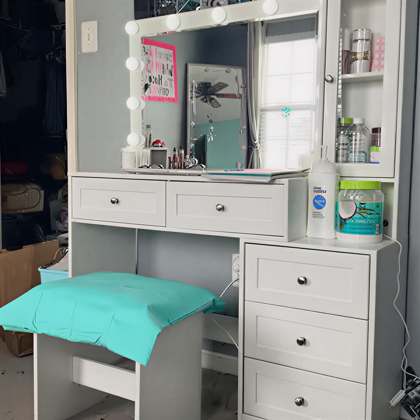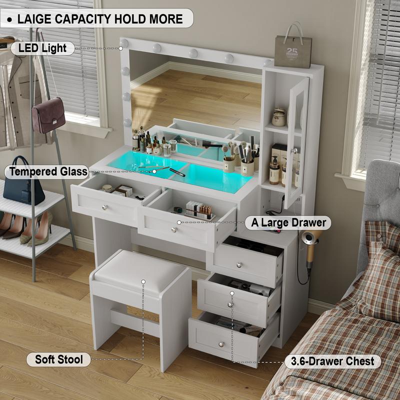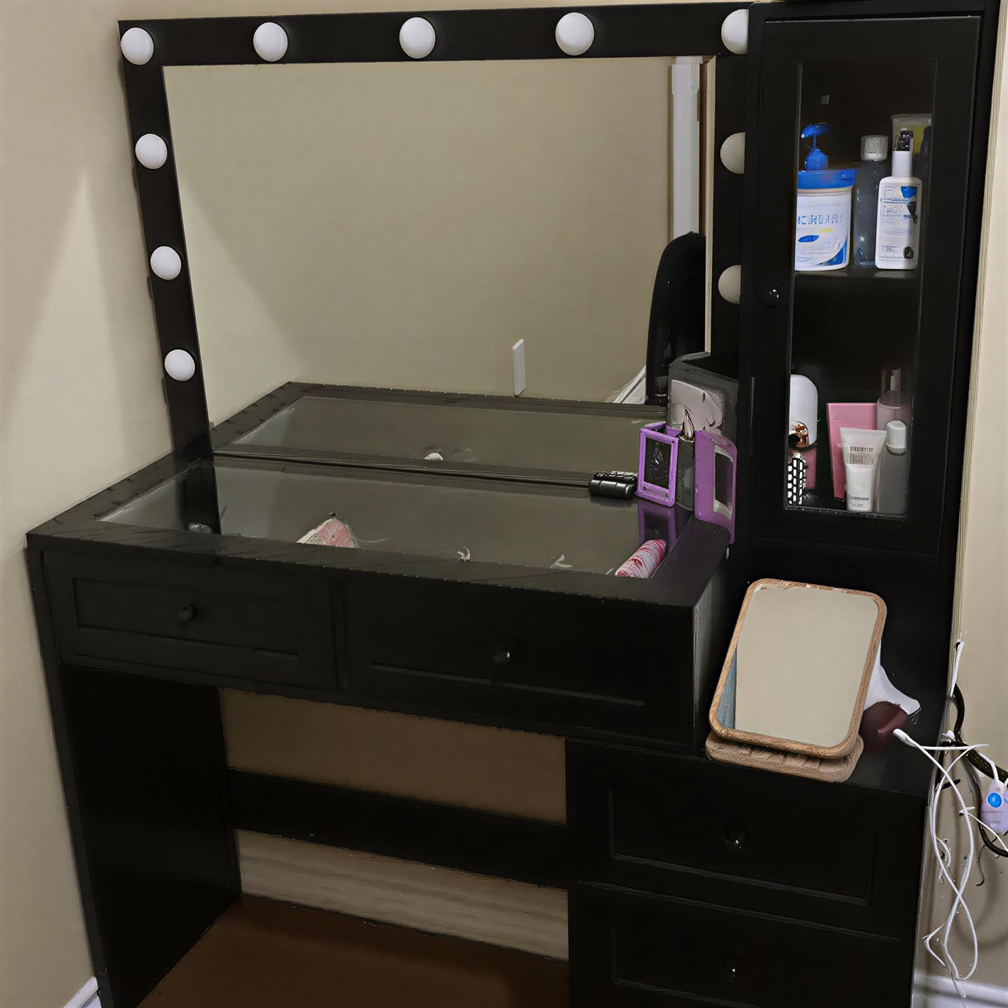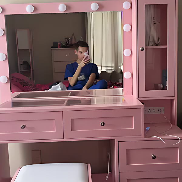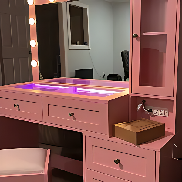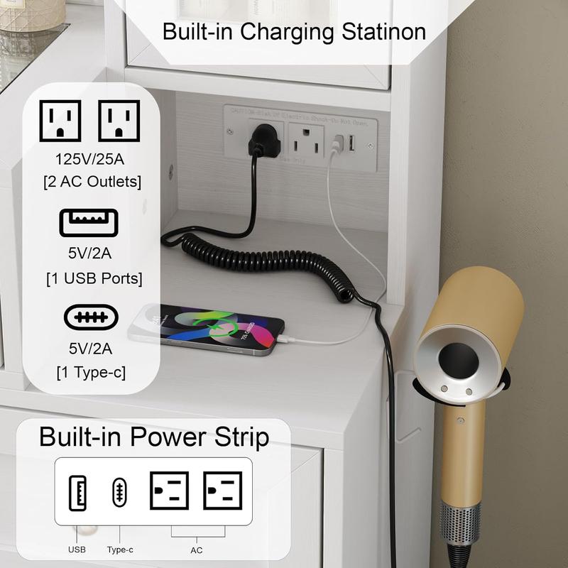 Yes! The vanity comes with a built-in power outlet, making it easy to charge your beauty tools, phone, or other devices while you get ready.