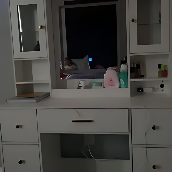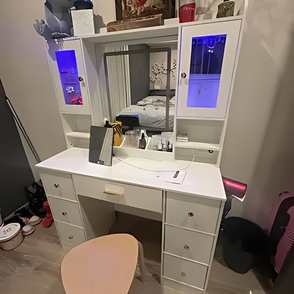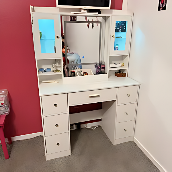 The vanity comes with a large, full-length mirror, providing a clear view from head to toe. It's perfect for styling and checking your outfit before you leave the house.