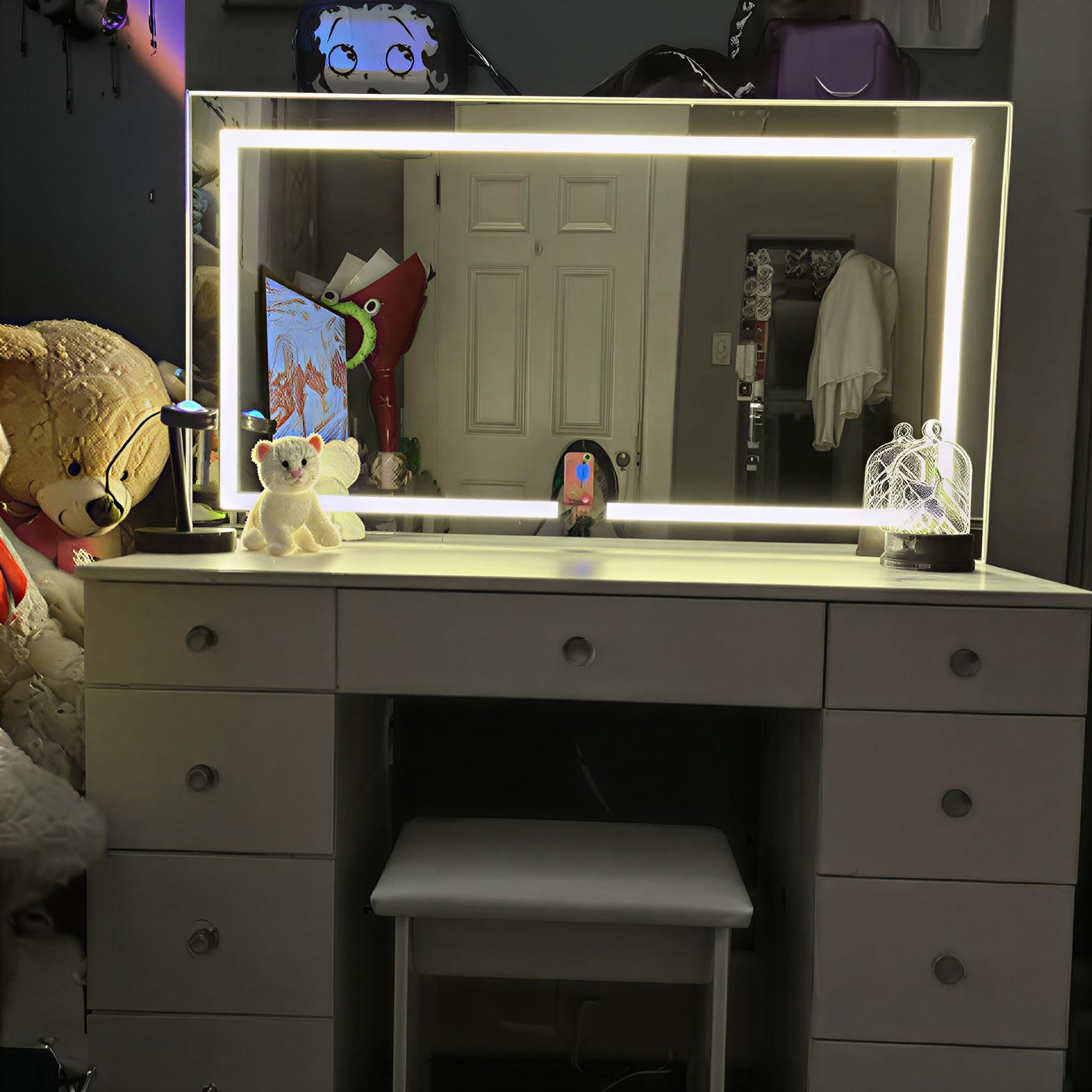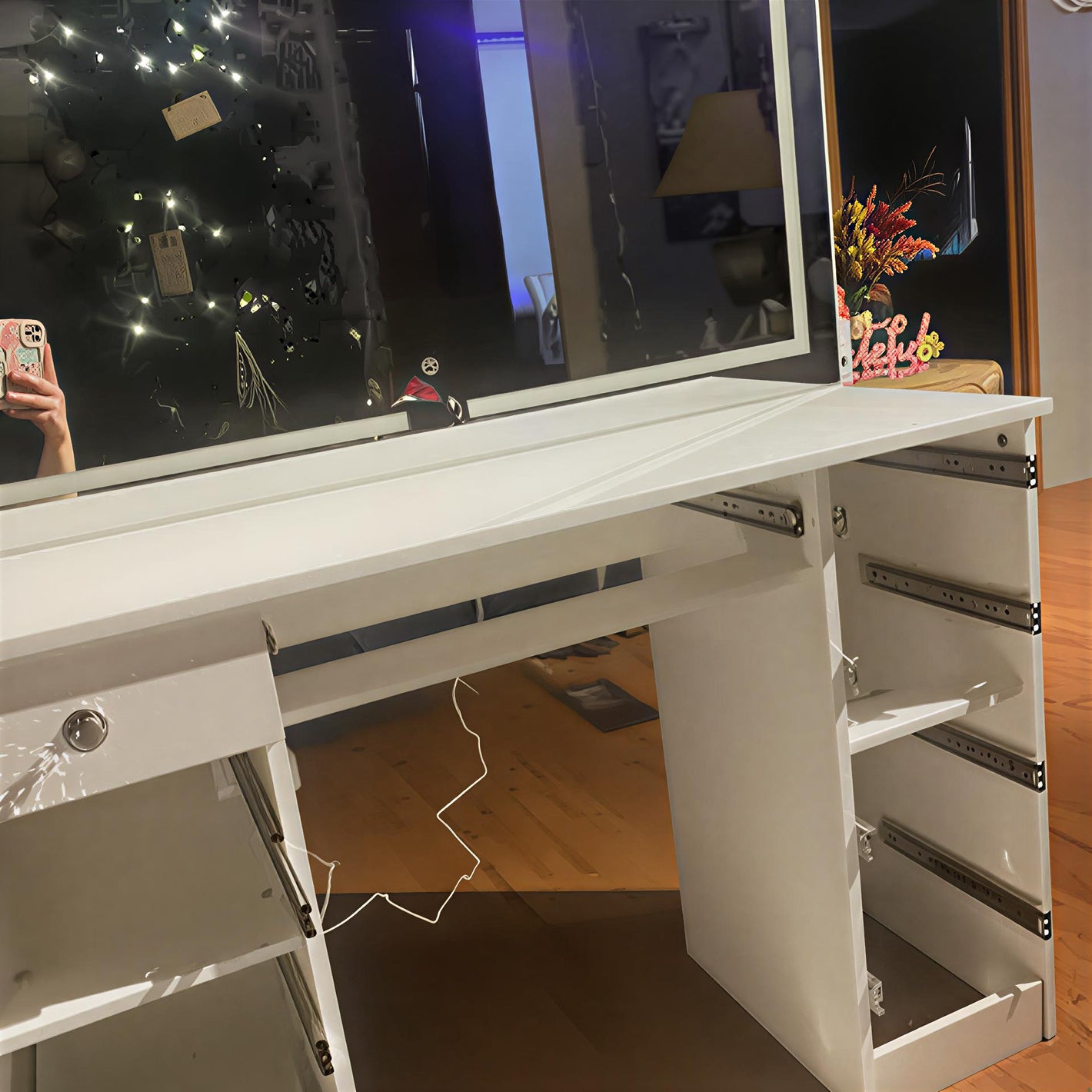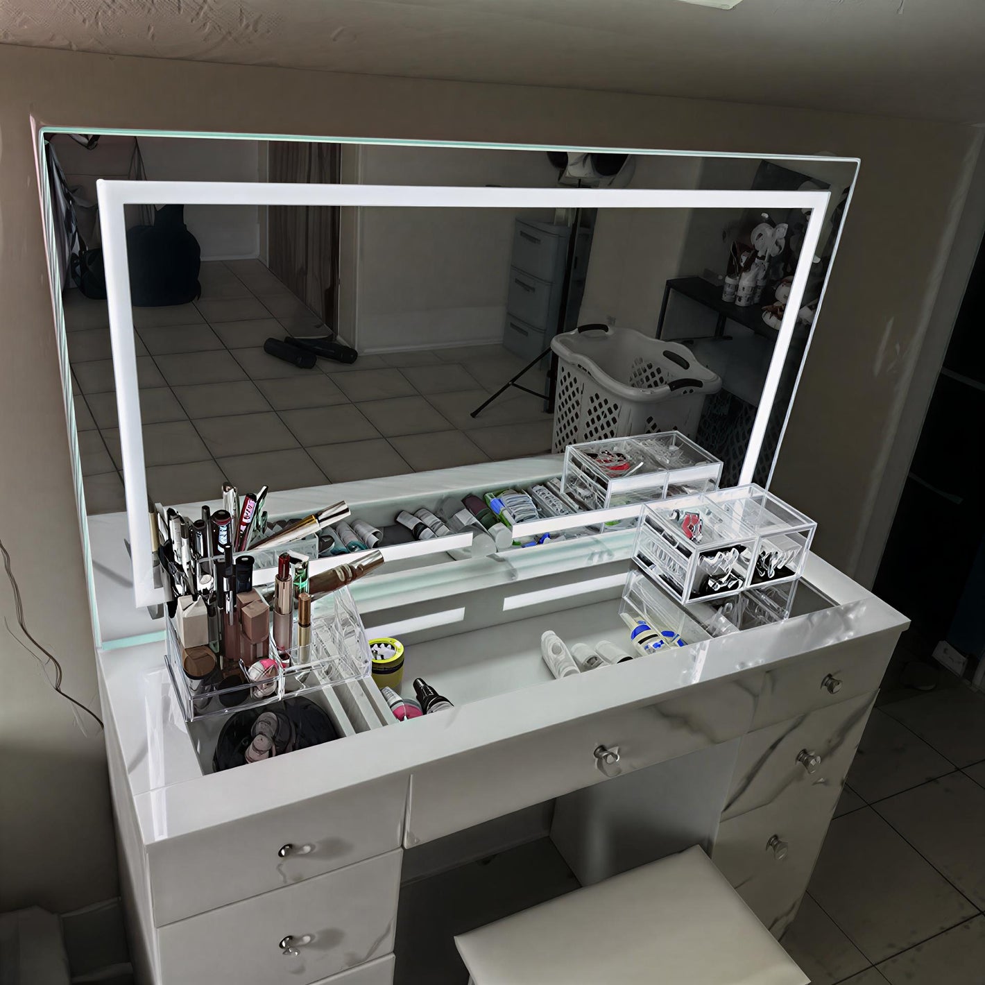 The vanity features 9 spacious drawers, providing ample storage space for makeup, accessories, and other essentials.