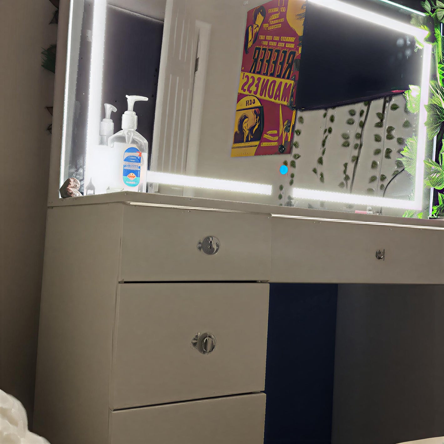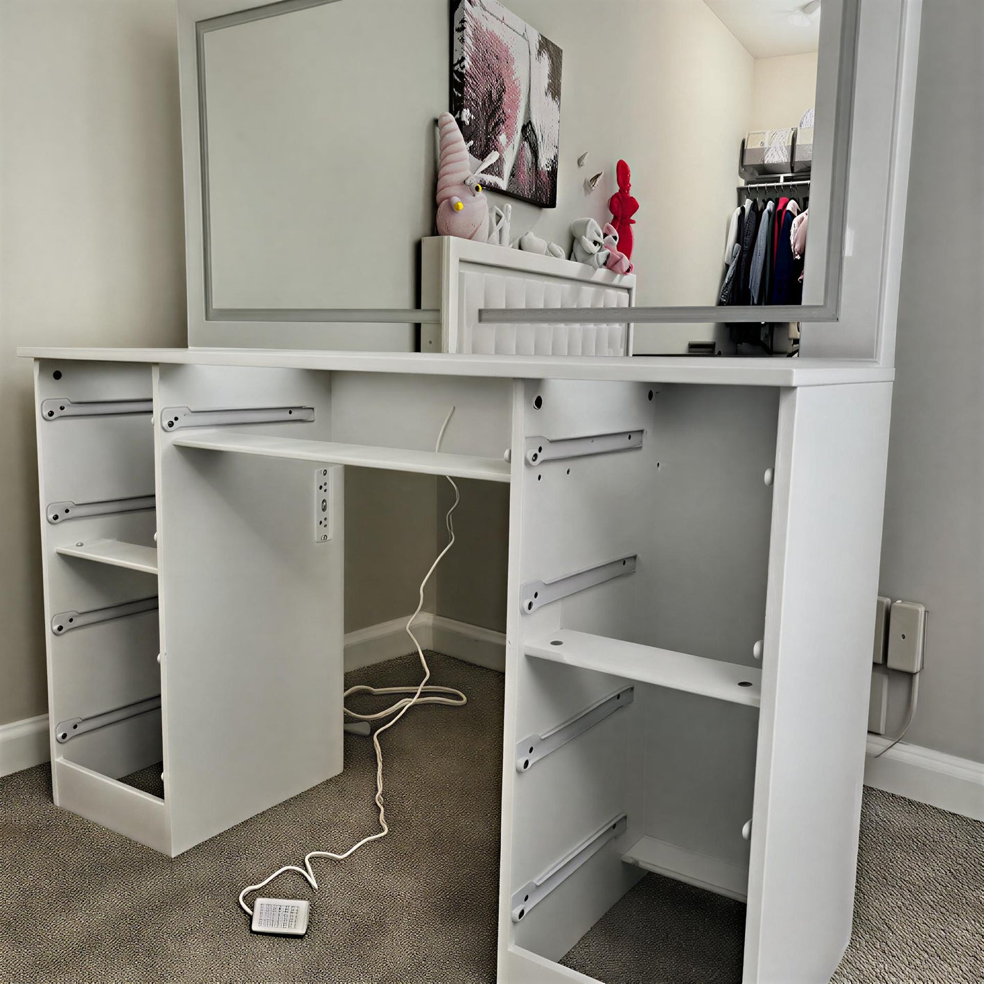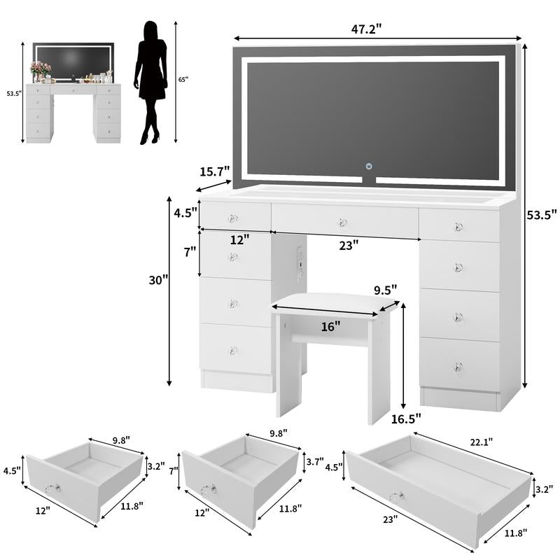 The vanity features 9 spacious drawers, providing ample storage space for makeup, accessories, and other essentials.