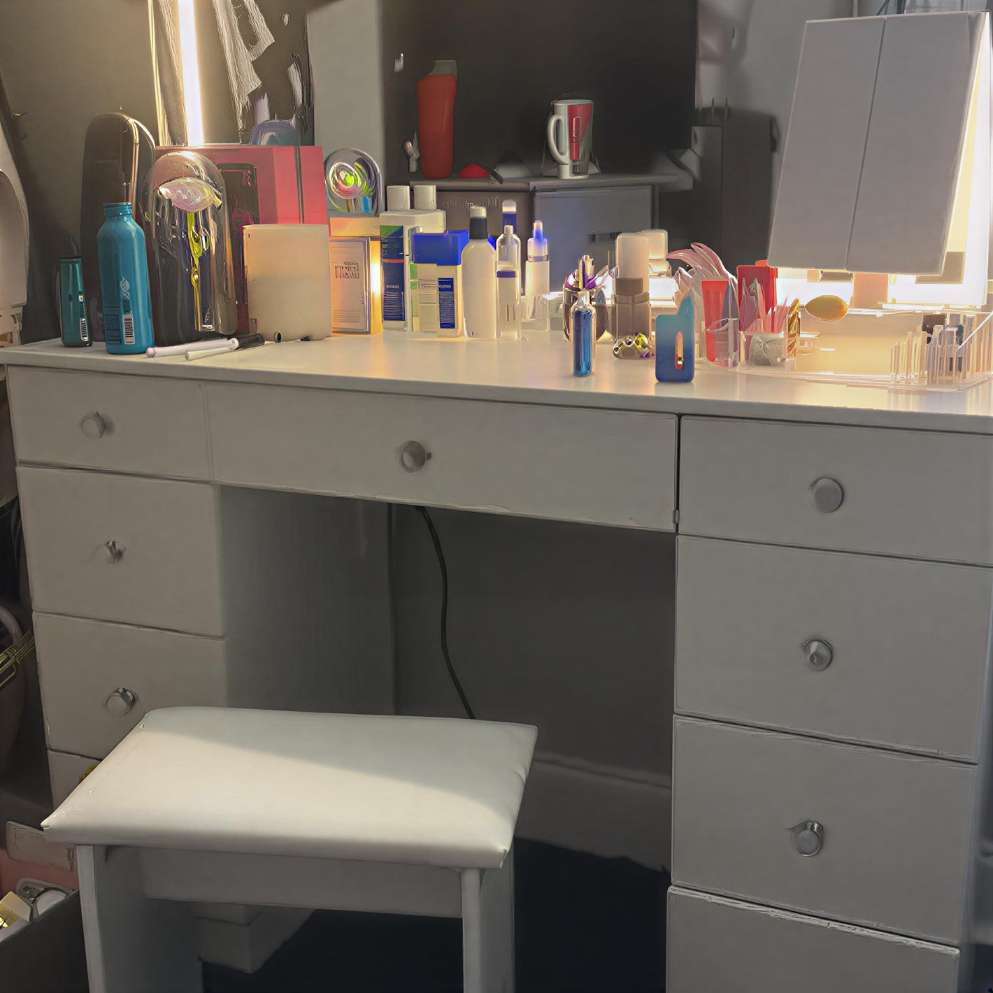 We recommend using the vanity in a dry area like a bedroom or dressing room. Avoid placing it in humid environments like bathrooms to protect the electrical components.
