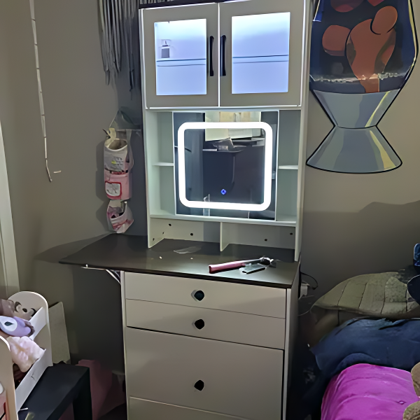 The vanity operates with a standard 110V-240V power outlet, and it can be easily powered via USB for convenience.