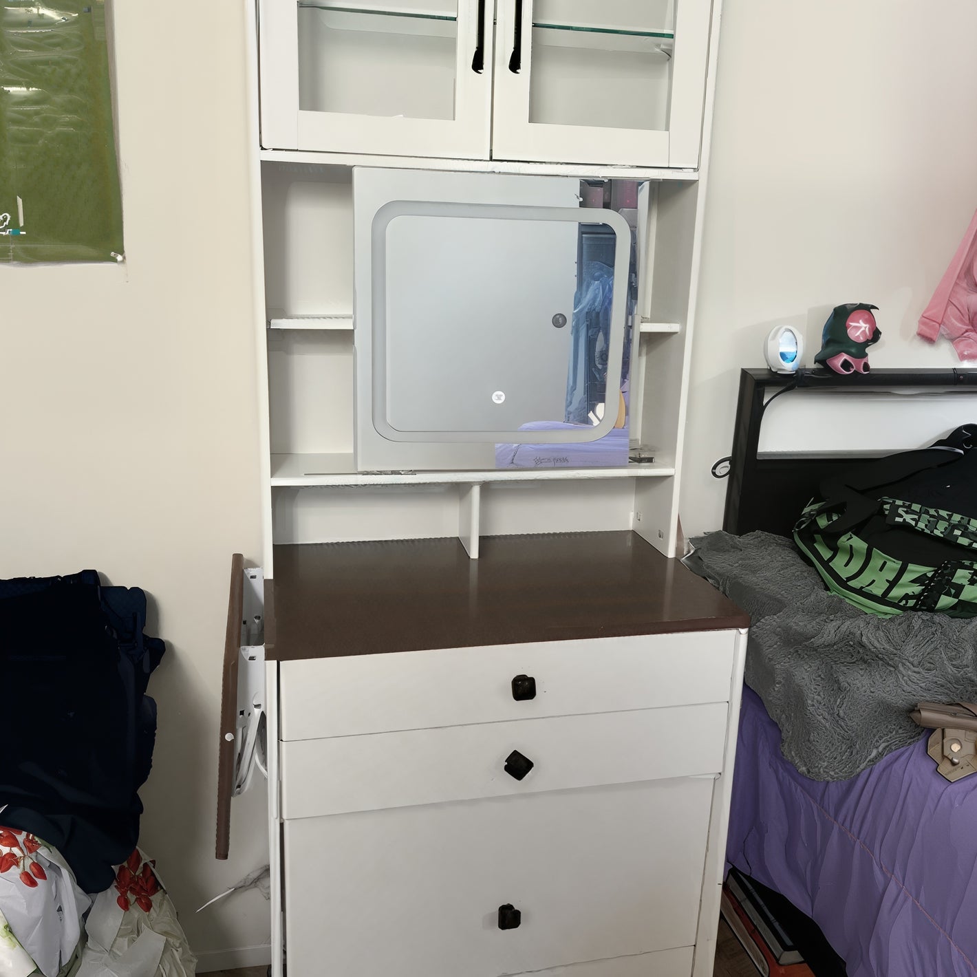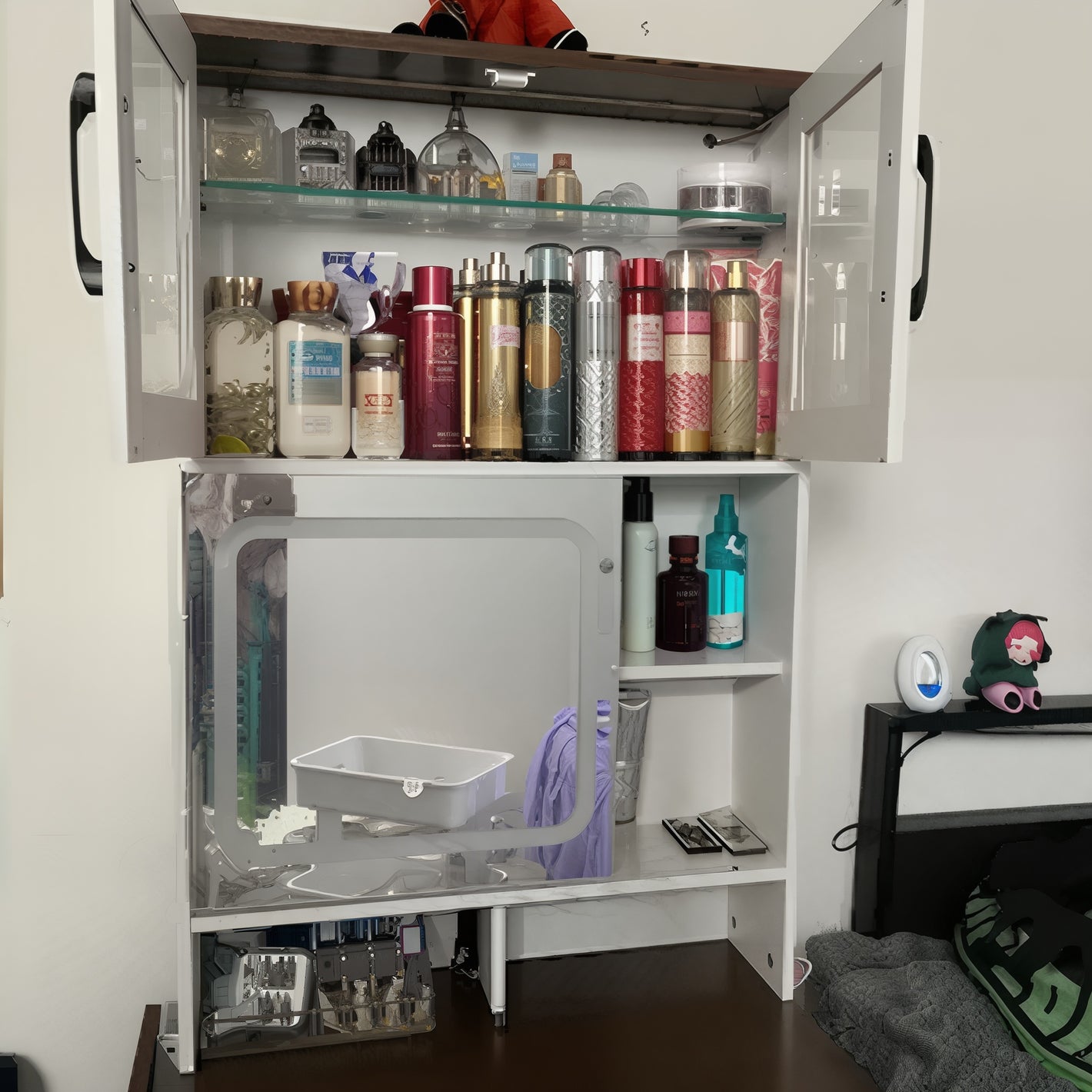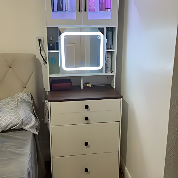 The vanity measures 24 x 12 x 42 cm (L x W x H) and is designed to fit comfortably in small spaces without compromising on functionality.